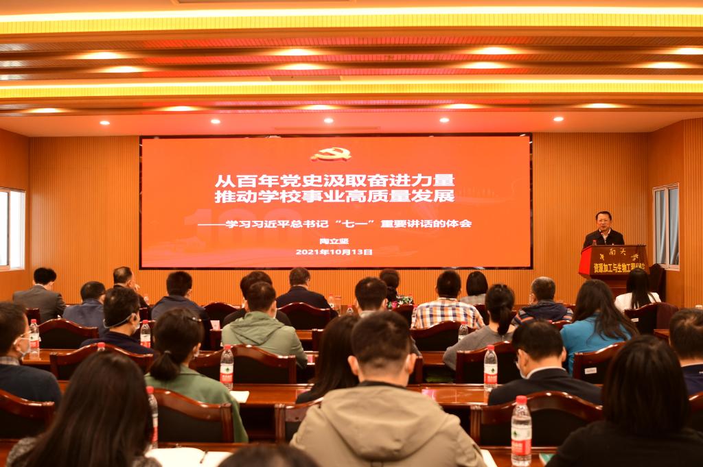 10月13日下午,校党委常务副书记陶立坚在生物楼301为党委组织部(党校)党支部和赢博体育 党员师生讲授了题为《从百年党史汲取奋进力量、推动学校事业高质量发展——学习贯彻习近平总书记“七一”重...