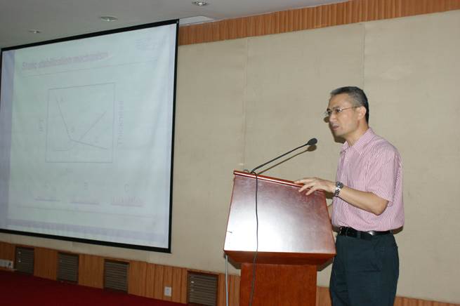 向在会议期间抽空来出席本次报告的各位学者表示欢迎,并简要介绍了中南大学历史沿革、办学特色、学科优势等方面的基本情况。并简要介绍了生物冶金的基本情况,邱教授指出:传统的冶金方法,是将矿石粉碎,然后采用高温熔化、分解、提炼。这种方法不仅要消耗大量能源,而且对环境污染较为严重。而应用生物湿法冶金技术,既不需要将矿石碎成粉末,也不用高温提炼,而是用微生物溶液,浸泡矿石,将矿石中的金属浸出,然后再进行萃取,从而提取金属。与传统方法相比,生物冶金技术具有流程短、成本低、环境友好和低污染等特点,已成为世界矿物加工的前沿技术。在低品位、复杂、难处理的矿产资源的开发利用上,生物冶金技术显示出强大优势。