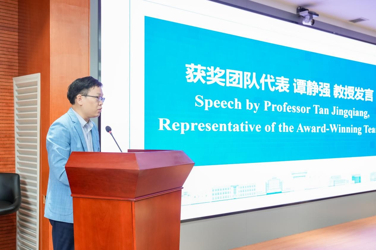 副院长谭静强教授作为获奖教师代表发言。他分享了团队在低碳技术研发中的探索历程,并对学校与力拓集团的支持表示感谢。