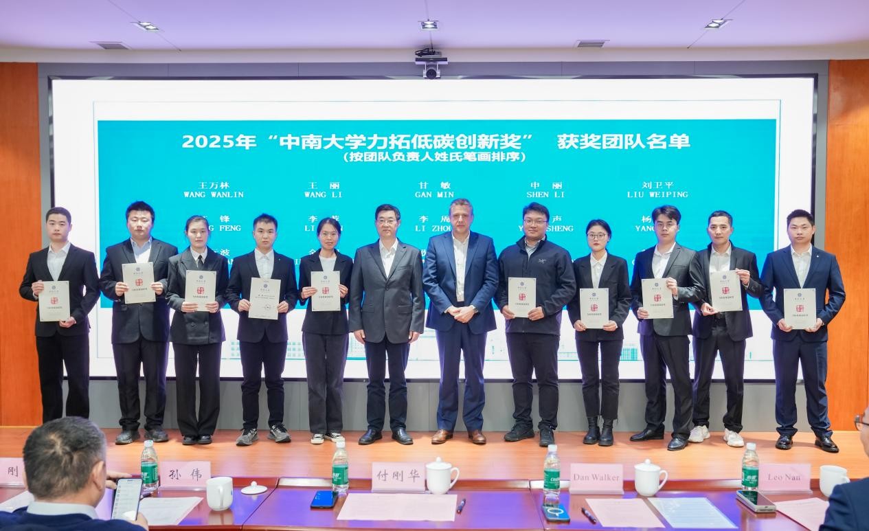 研究生院院长孙伟宣读2025年“中南大学力拓低碳创新奖”获奖团队名单。2025年,中南大学力拓低碳创新奖共评选出20支获奖团队,总奖金额100万元。付刚华与段巍共同为获奖团队颁发证书。